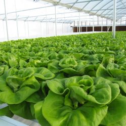 Dry Hydroponics is a Dutch company that specialized in the soilless cultivation of salads, herbs, and flowers. The company’s patented deep water culture system claims to give plants sufficient nutrients around the clock. Its construction makes sure plant leaves are surrounded by an encouraging micro-climate, which has an impact on the plant’s health and taste. The airy design of the system and the insulating layer between lettuce leaves and water keeps the leaves dry, hence the name. This means that certain illness, such as molds, can be prevented. What exactly a growth encouraging microclimate is, however, is not further explained. In fact, the thick, bright green leaves look almost artificial and each head of lettuce is the same. These super models can then be packaged, as they’re already clean.