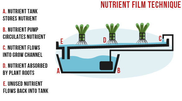 Hydroponics is a way to breed plants without soil, but using a nutrient rich liquid instead. A head of lettuce, for example, is planted in a substrate made of polystyrene, or mineral wool, to stabilize it. Its roots are then covered in a mixture of water and fertilizer, with roots either hanging in a ‘pool’ (Deep Water Culture) or in channels with nutrient rich water constantly flowing through (Nutrient Film Technique).